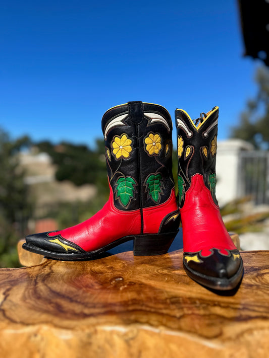 Stallion Custom Red Floral Peewee Cowgirl Boots size 6 B