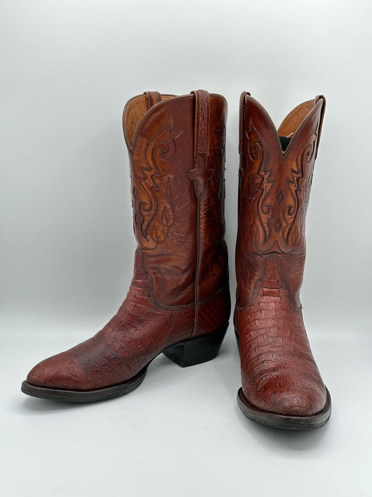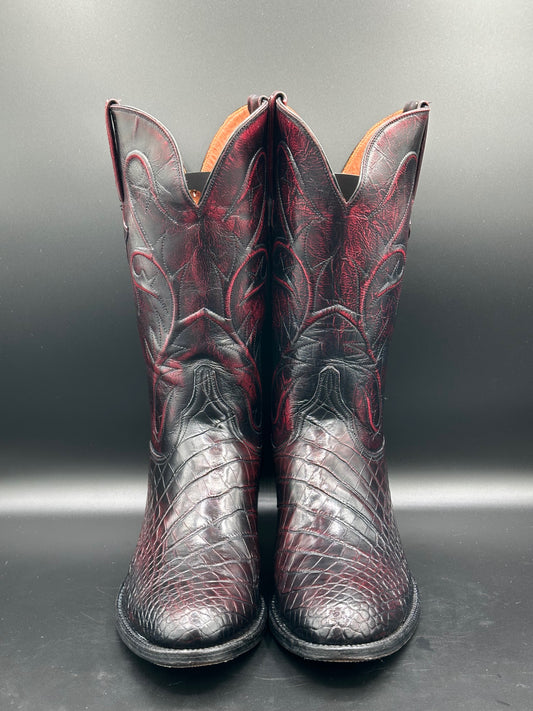 Lucchese Black Cherry Bias Cut American Alligator Cowboy Boots size 10 D