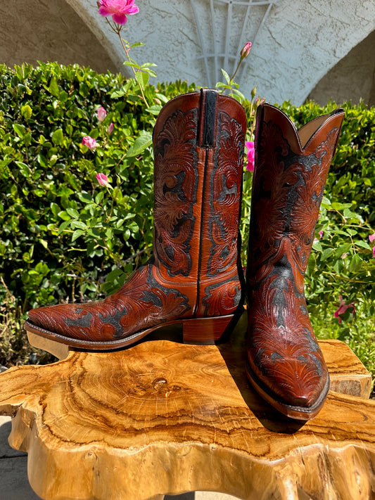 Lucchese HAND TOOLED Kents Cowboy Boots size 12 D