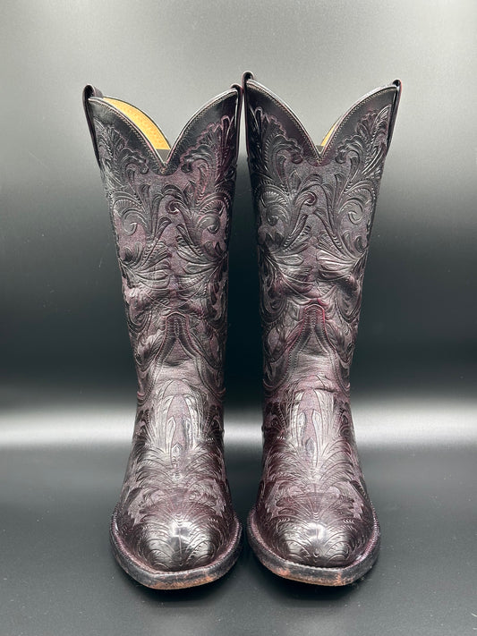 Lucchese Black Cherry Custom Hand Tooled Cowboy Boot size 7.5 D