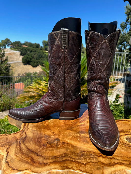 Vintage Tony Lama Full Teju Lizard Cowboy Boots 8 D