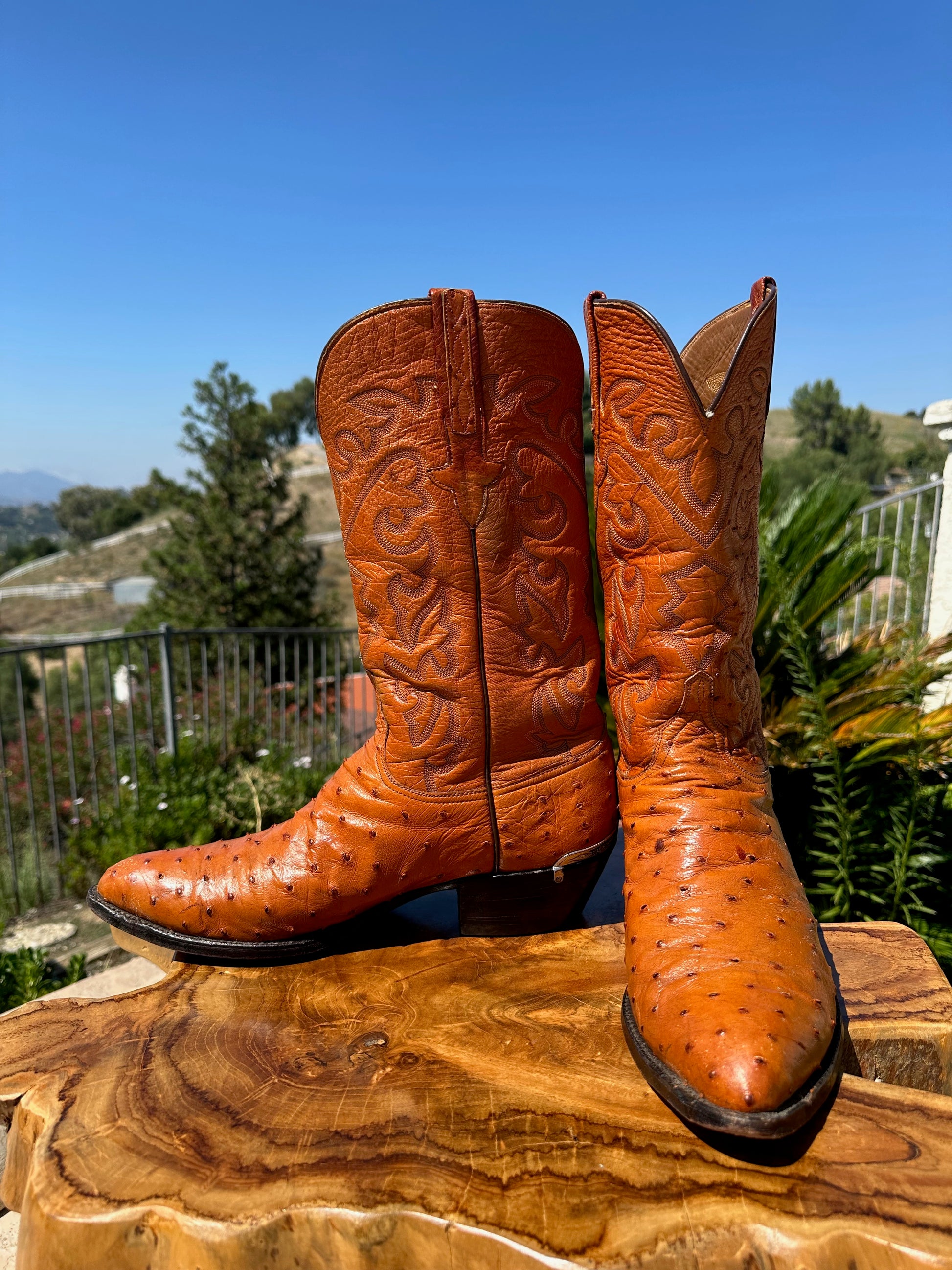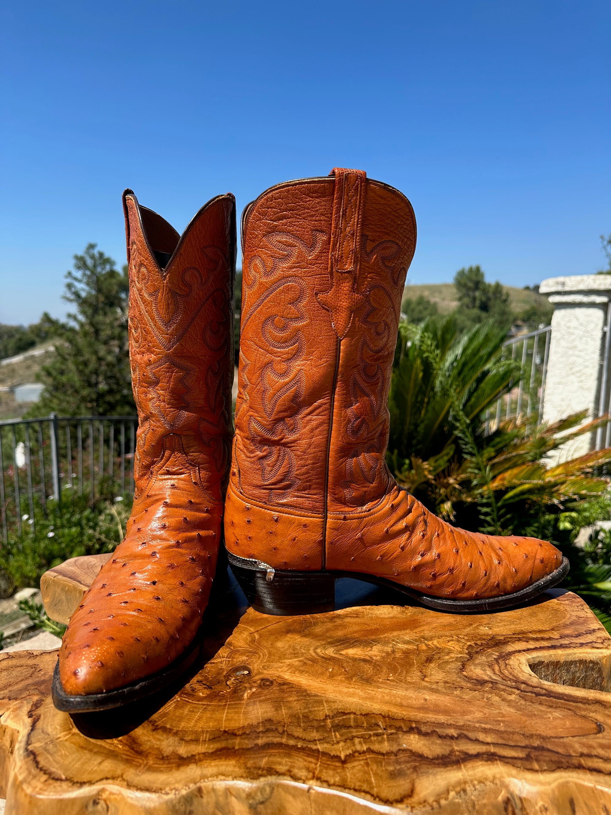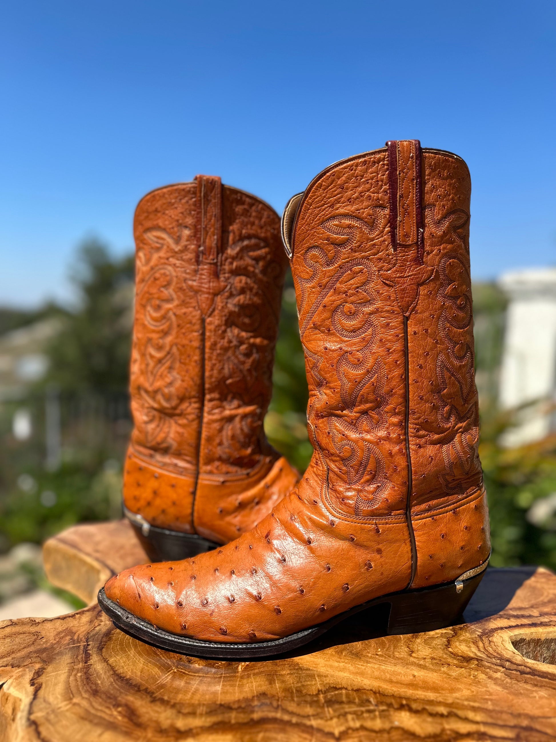 Lucchese Full Quills Ostrich Top and Bottom Cowboy Boots in size 12 D. Lucchese brown labels made in El Paso on the San Antonio lasts. As good as it gets.