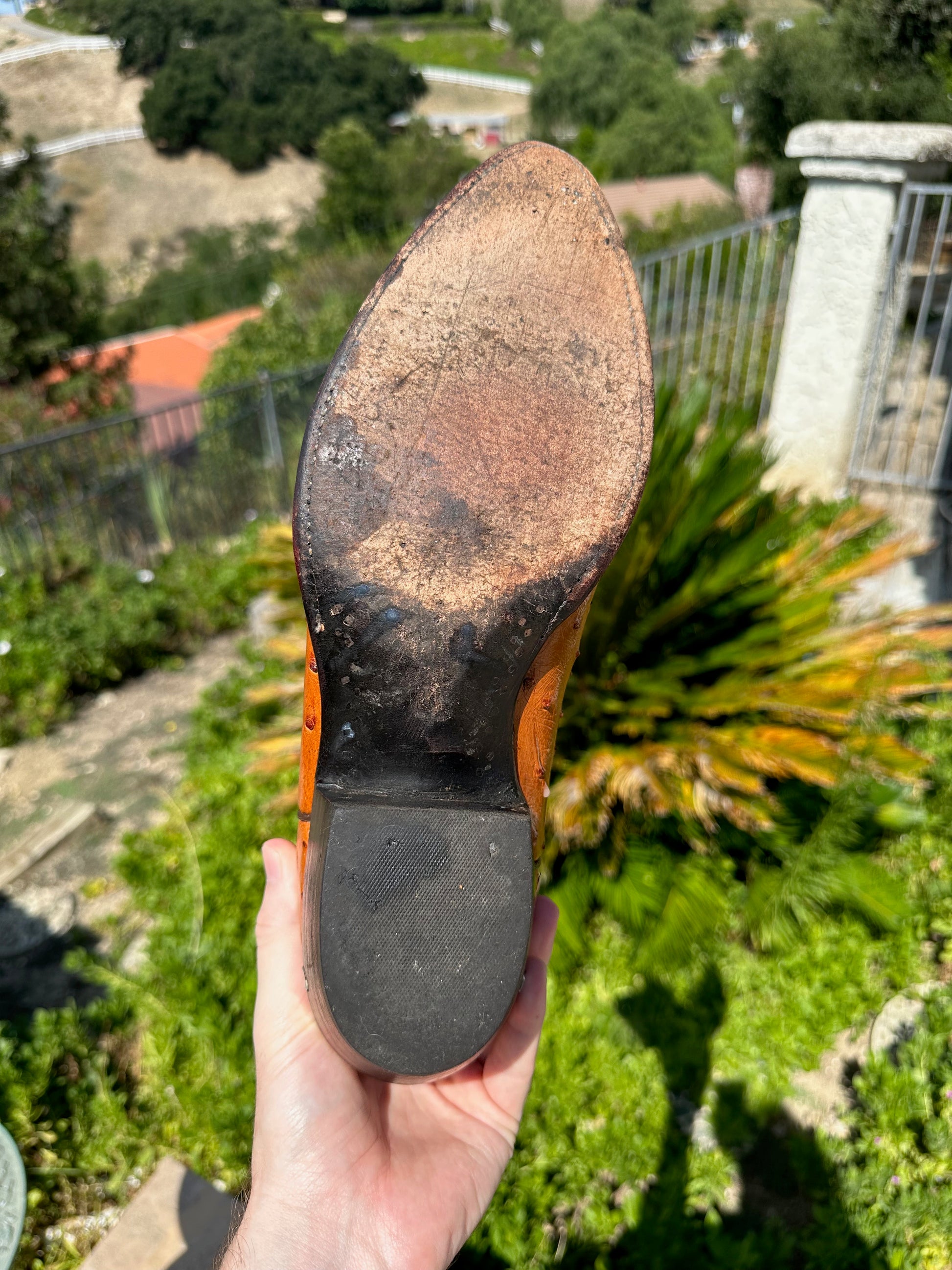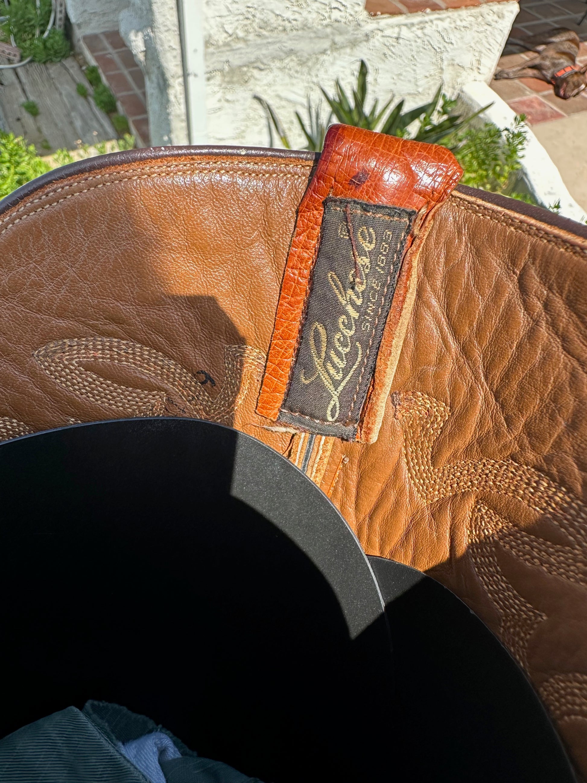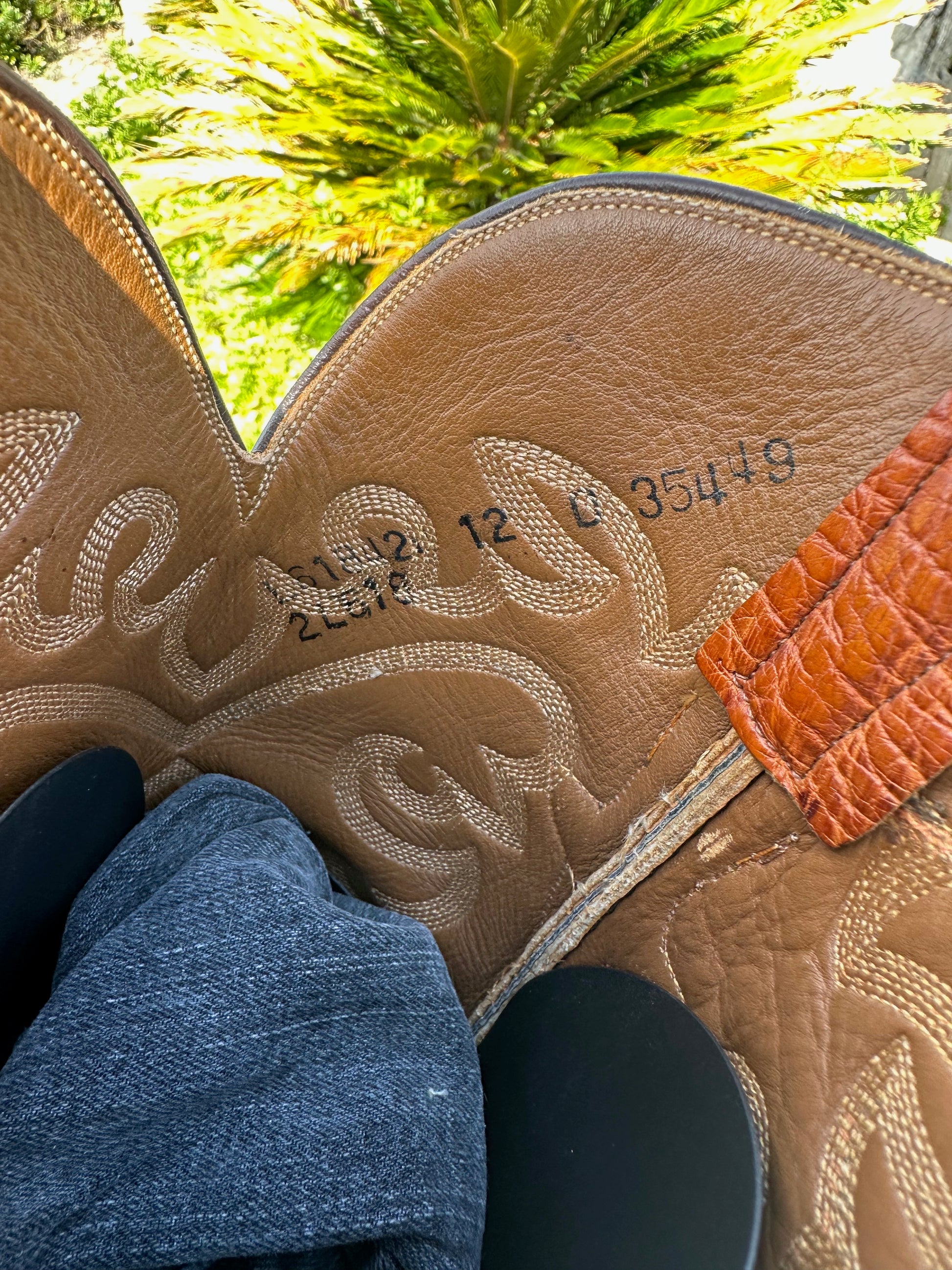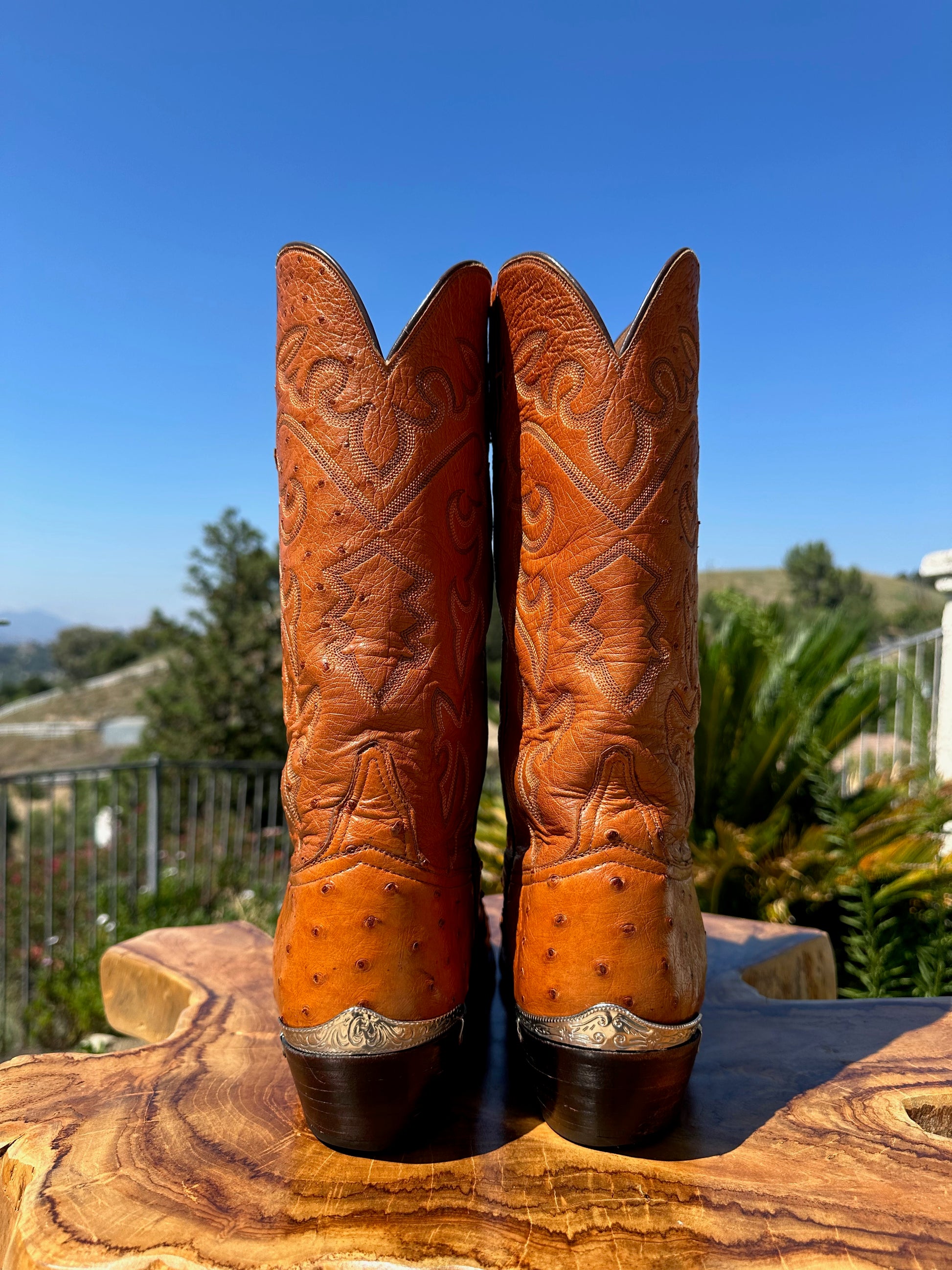 Lucchese Full Quills Ostrich Top and Bottom Cowboy Boots in size 12 D. Lucchese brown labels made in El Paso on the San Antonio lasts. As good as it gets.