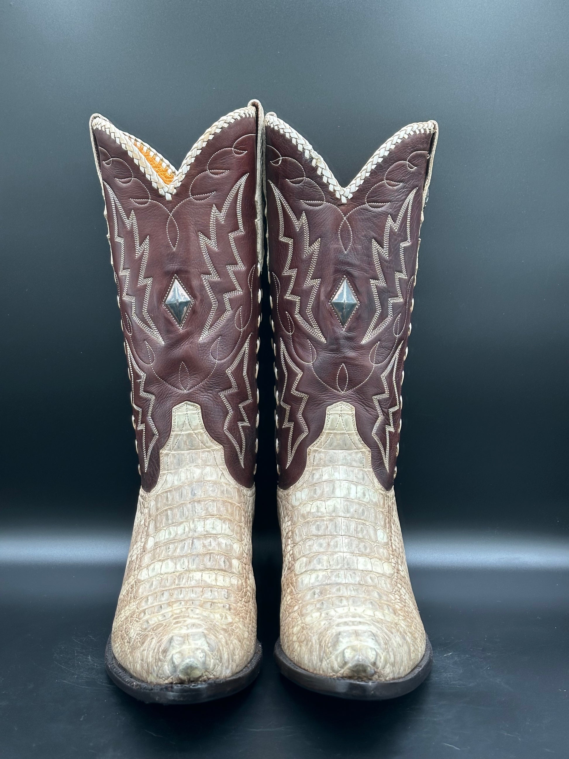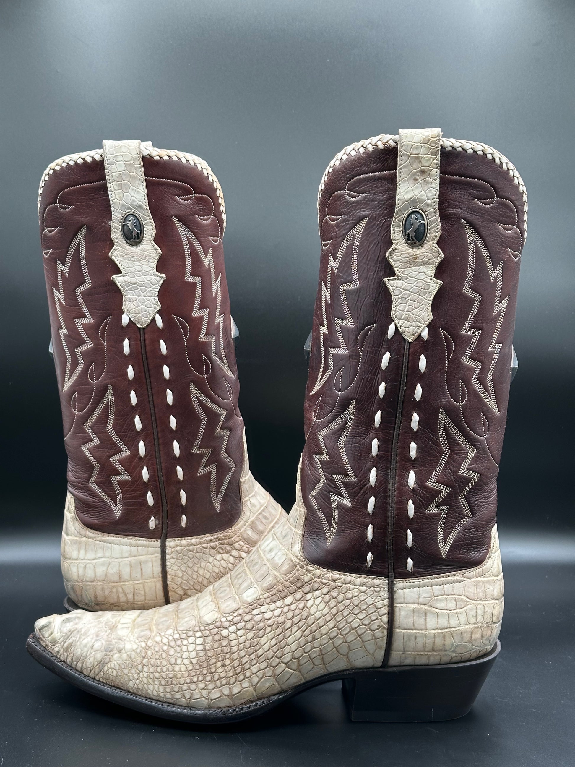 Stallion Custom Albino Alligator with Sterling Silver Inlay Cowboy Boots size 9 D
